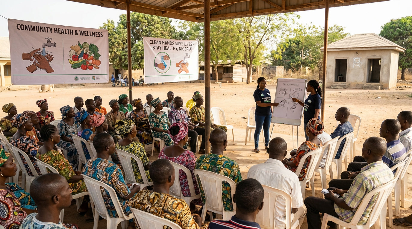 Community sensitization on hygiene, nutrition, reproductive health, and disease prevention.